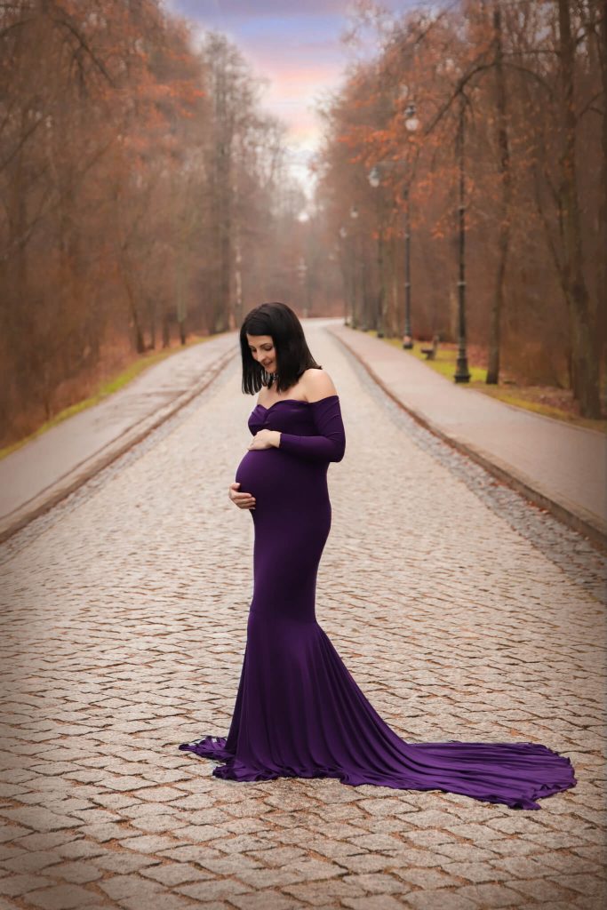Do sesji stylizowanych posiadamy piękne suknie ciążowe, szyte na zamówienia specjalnie na takie okazje, które udostępniamy przyszłym mamom.