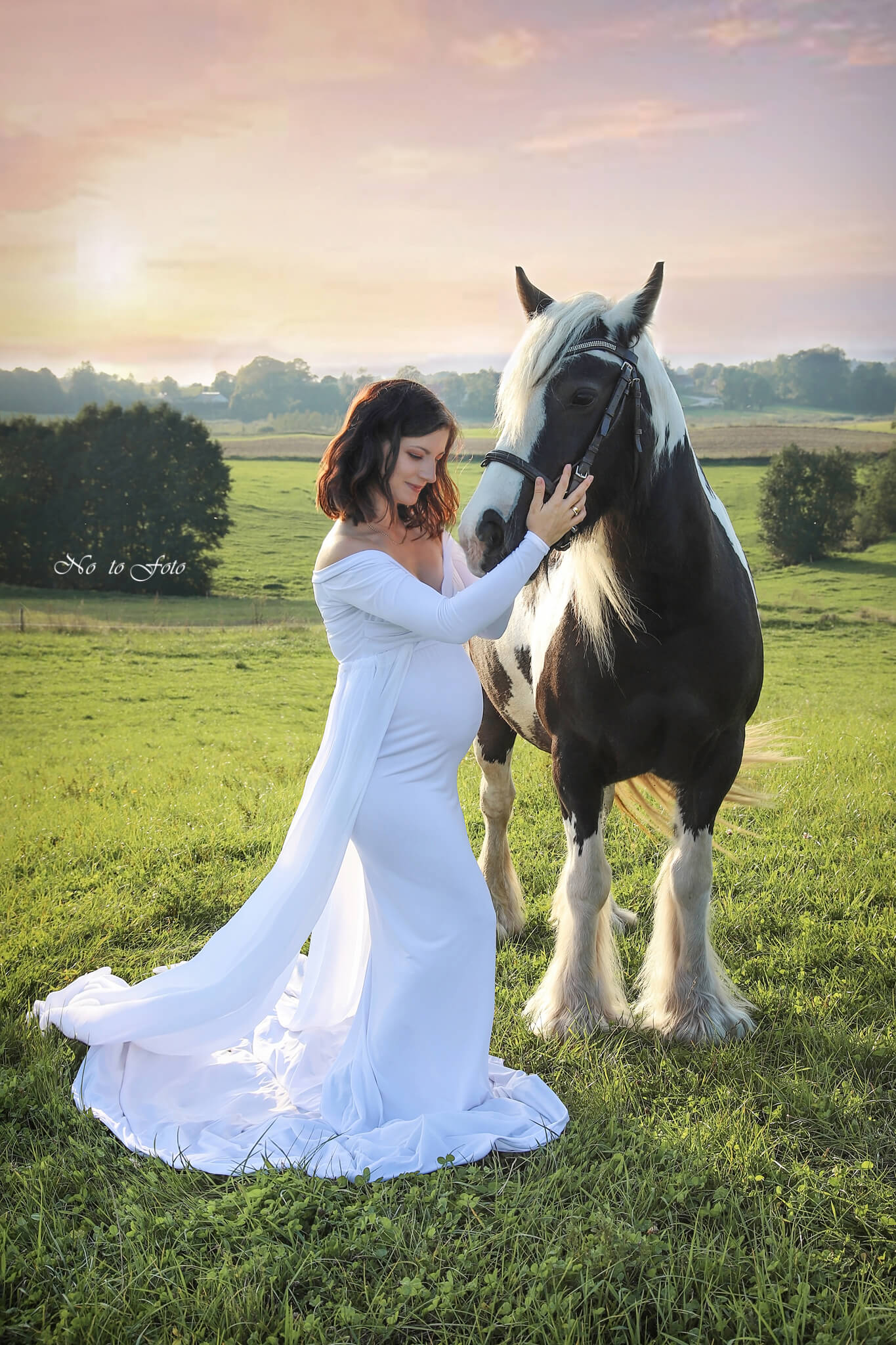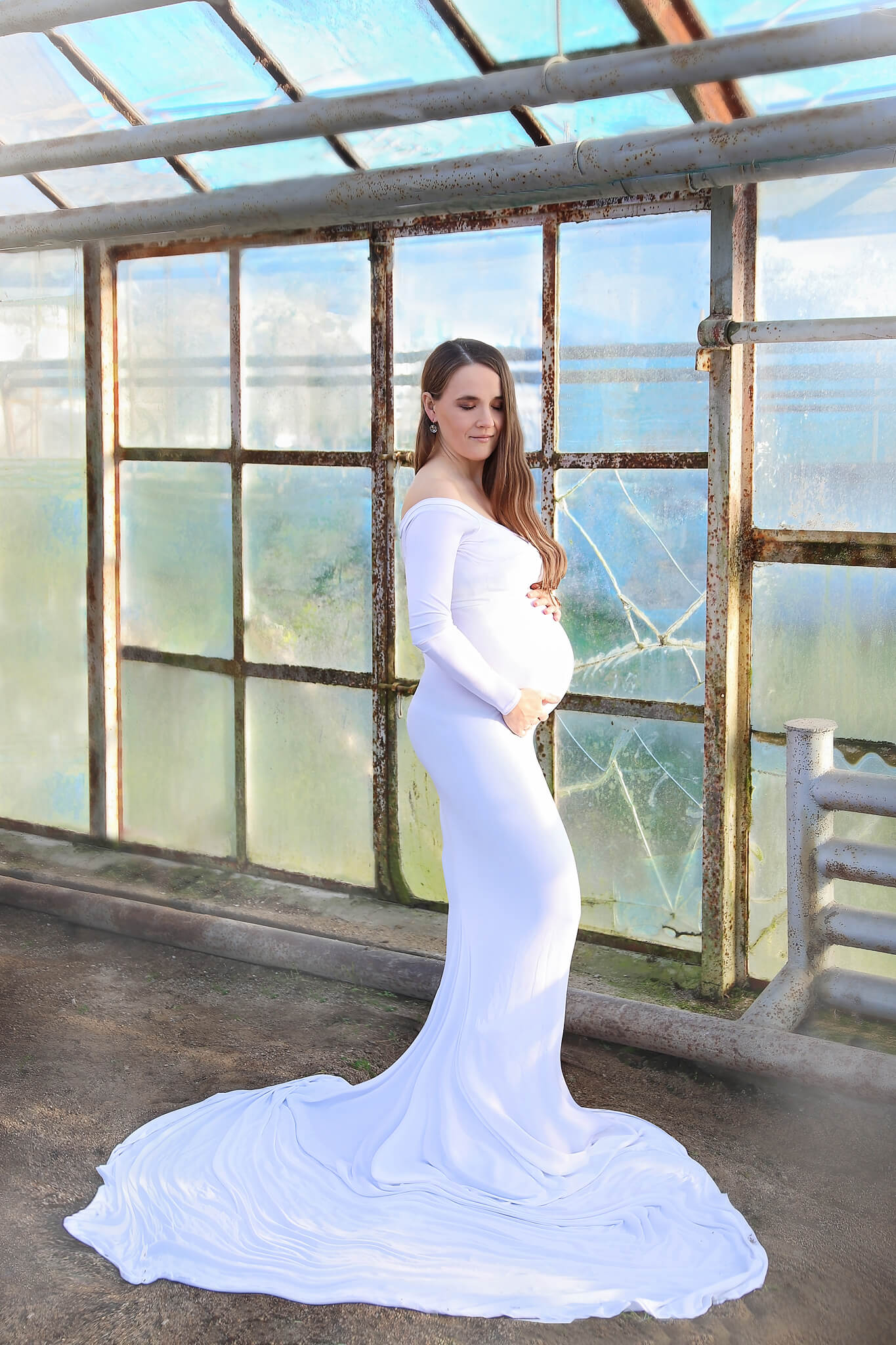Do sesji stylizowanych posiadamy piękne suknie ciążowe, szyte na zamówienia specjalnie na takie okazje, które udostępniamy przyszłym mamom.